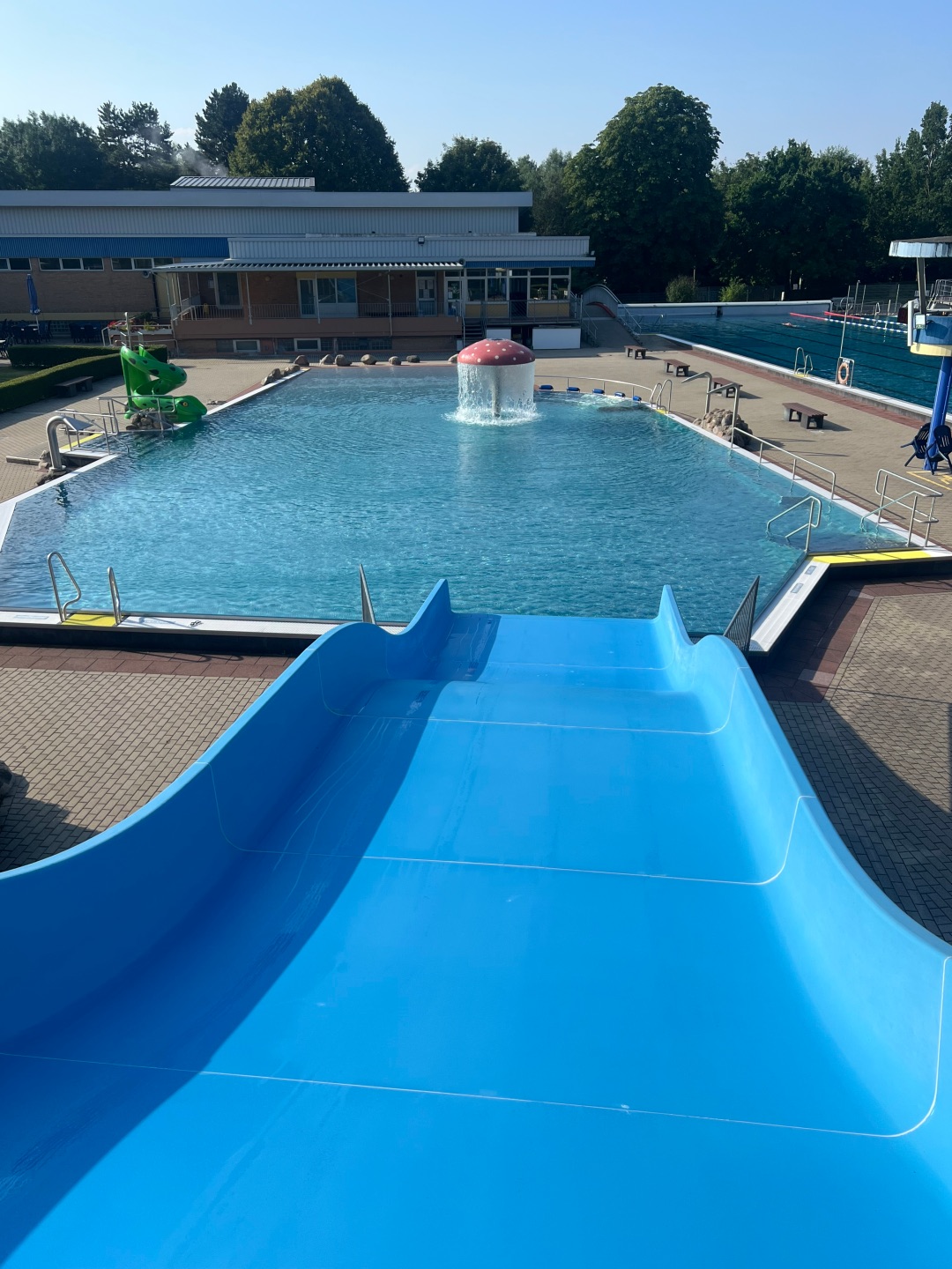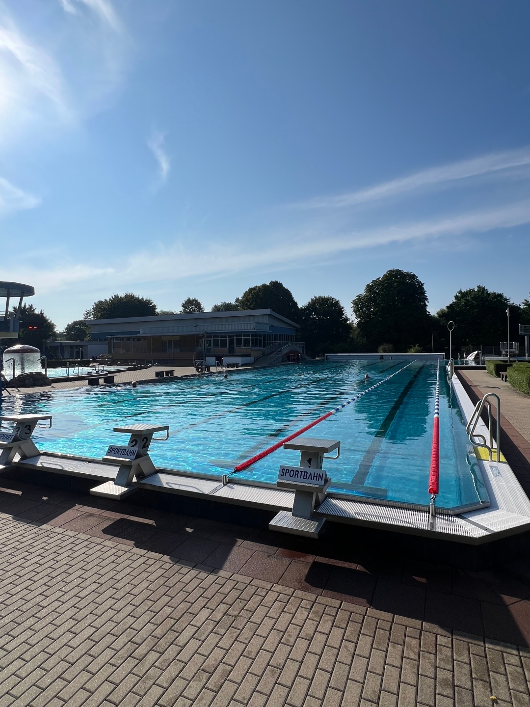 Für Familien mit Kleinkindern steht unter anderem eine aufwändige dreigliedrige Planschbeckenanlage zur Verfügung. Dreimetersprungturm und 50-Meter-Sportbecken