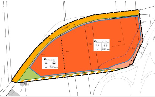 „Sonderbauflächen, Zweckbestimmung DRK-Rettungswache sowie DRK-Katastrophenschutz“ im Bereich „Wehrenpfad“